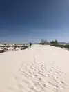 Went here while visiting the other NP in the area. Was not sure what to expect, but it was well worth the 3 hours drive from Carlsbad NM. The dunes are amazing to see and the fact that they let you roam thought out is great. Roads do get covered with the sands, so be careful not to drift to far to the side or you may get stuck. If you have a snow sled you can bring it, as they do let you sled down the dunes. While the temps were in the low 100's the day we visit, the sand itself was not hot. Advice to remove shoes while walking as the sand as it very fine and does get in your shoes and socks. the day we visited the winds were very strong, so sand was flying in eyes. glasses and hat are a must. Stop by the visitor center and watch the move as it does help explain where and when the dunes started forming. Either eat before coming out to the park, or bring a picnic as there is no food in the park to buy and the closest town in 25 minutes away. Same goes for gas.