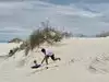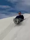 Fun 'sledding the dunes'. Sleds little pricey, 24.99, 19.99 if you can get a used one and wax is 2.99. They say if you return sled you get 5.00 back - not cash though. It is to use in the gift shop. If you are lucky, you can find someone to sell or give to. You definitely need the wax! We waxed our sleds every couple of runs. Hard to believe all that sand/gypsum surrounded by mountains. Glad we went! Definitely take water, sunscreen, hats and sunglasses!!
