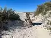 We arrived at 8:00 AM because it was forecasted to be 100 degrees that afternoon. We used our America the Beautiful pass; otherwise it is $25 per carload to get in. The road through the park is paved at the beginning but then it turns to only sand. They must clear the sand off the road throughout the day because it wasn’t deep at all. We drove to the Alkali Flat trail (which is definitely not flat). There is a sign at the beginning stating that water is required for the trail as people have died from dehydration. The white gypsum sand is very cool to the touch, so we walked barefoot most of the time. The sand markers help you navigate the route, so it’s important to follow those. This park is dog friendly, and our dog (and lots of others that we saw) had fun frolicking in the sand.