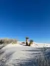 Lovely day trip from Las Cruces. About an hour away. Friendly rangers at a small size visitor center. Enjoyed the short film very much. They have a good size gift shop in another building behind them. No one was manning the entrance so no fee that day to enter. The boardwalk was closed the day we were there. That would have been nice to see and do. An easy drive that starts off on paved roads and then changes to very hard packed sand. We were in a regular car and had no problem. The farther in you drive the better it gets. Many pull offs for breaks and even picnic tables and grills. Literally, hundreds of them. If you have lived where the snow is plowed in the winter, the sides of the roads here will remind you of that. Be sure to wear sunglasses 😎 as it is so blinding white. A few adults were trying to sled down the hills but were not successful. Too heavy…leave it for the kids. We enjoyed the Park and its uniqueness.