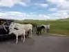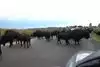 We saw Buffalo right on the road. Donkey were right on the road and came up to our car. Also saw long horned sheep.