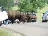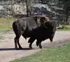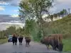 After doing their business, we noticed a brown mass near the side of the road. Separated by a laughably feeble fence that gave the people around us a way more secure feeling than it should have, we found ourselves feet away from a large lone make near the head of the trail. Apparently he was kicked out of the heard and was a loner (or so the nearby ranger told us)