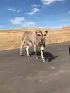 Just a bit farther down, the burrows were out in the road begging. Granddaughter got out to pet them when we saw folks out of their cars. The burrows were downright docile. She loved it.