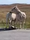 We encountered several hundred bison, pronghorns, some burros and a few huge male bison, who are not part of the hurd because they're aggressive. Also a female nursed her calf right in the road in front of our car. Take carrots or apples for the burros as they are very friendly.