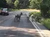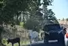They are gigantic creatures, and very much at home. The stroll right past you car without a care. All of the kids were awed by them.