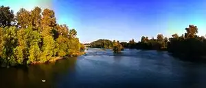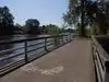 The access to this park is over the river. There are at least 3 bridges for bikes/pedestrians. The path is wide. Most of it is paved, so wheelchair accessible too. Pleasant meandering trail along the river.