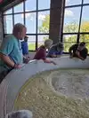 All staff is very welcoming and knowledgeable. My sister, Mom and myself took the tour - so family, but no kids. We were presented with a small tasting glass that we carried on the tour. We used this throughout the tour as the tastings were presented at different points along the tour. The tour winds through a few buildings located in close proximity and followed a cobbled paved path. One of our party was using crutches and was graciously accommodated. Viewing the bubbling fermenting tanks was the only point not accessible as there was two short flights of stairs required.