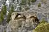 Near the top there is an unofficial side trail (use caution) to some smaller cave-like indentations in the side of the mountain. Once up to the top you descend a little to the wind caves themselves. The caves have a slanting floor to a steep drop-off, so beware. A truly odd geological formation to ponder while you get your energy up for the descent.