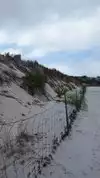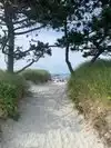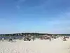 Amazing stretch of beach sheltered from the land by dunes. Great!! Seaglass picking! Very cool it low tide.free parking and portopotties.
