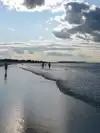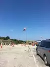 This is a nice wide beach with soft sand and then really hard sand as the tide goes out. It is a nice place to take the family for a day at the beach. The waves are good and there is plenty of space to settle in.At low tide there is a sandbar that you can walk to the little island just on the left of the beach...but be careful that the tide doesnt come in and leave you stranded there! There is a little snack bar too just at the beach walkover entrance. There is a pretty hefty parking fee but worth it for the day.