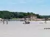 Beautiful beach. The road is a bit windy and hilly, but persevere. Bath house, and a wide stretch of lovely sandy beach.
