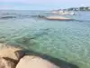 The water is pretty clear (for New England) but since the beach is in a cove there are hardly any waves at all. Kind of a bummer since my kids and I like big waves but it is nice for smaller children. The lack of shells makes it easier on your feet when walking in the water. Also, the ground under the water slopes downward gradually/slowly meaning, there a no big drop-offs which is good.