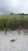 After our trek from parking, we had a hard time finding an access point to the actual beach. After a while, we found out you can get to the beach from three points: the end where the snack stand is, a path through the middle of the dunes where there is a “2” marker, and the last at the end of the resident parking section. Once on the beach, we found it to be very clean and the sand was very soft. The beach is kind of split into 2 sections by some big rocks in the middle of the beach. The kids can climb on the rocks but two of three of my kids sliced their toes. So, wear water shoes if you're going to climb on the rocks. There are hardly any shells on the beach for collecting but there are some near the rocks. No boogie boards or any floatation devices are allowed.