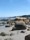 Quiet day, beach is lovely. There are several rocks to wander around and on. Beach is smaller when there is high tide. But you can walk out very far at low tide. Enjoyable afternoon.