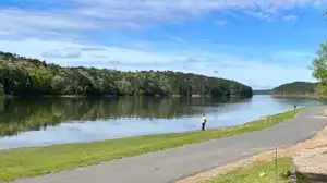 The local Rotary Club maintains the landscaping and the large grassy picnic area with well maintained picnic tables. There are also modern, clean restrooms.