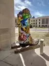 I found this free, two story (with elevator) museum amazing with all there was to see and do. I was there when a group of school children were visiting and it was fun watching them enjoy the museum especially the interactive " Hands on Habitat Area" where you could smell a ponderosa pine, hear elk bugle, crawl through a prairie dog tunnel, etc. Wyoming is known as a "dinosaur graveyard" so there was lots of info on prehistoric times. Along the way I learned fun facts about WY such as there are over 400,000 pronghorn antelope in WY (only 750,000 in entire US) which exceeds the population of the state or the fact the tallest building in the entire state is the dormitory at the University in Cheyenne. If a subject pertains to WY, it is featured here. One of the more unusual exhibits I liked featured Thomas Molesworth (1890-1977) who designed a distinctive style of furniture that was functional and looked like it belonged in the Wild West. Outside the museum is my favorite of the 25 eight foot high boots (part of a fundraising project for the Depot Museum) titled "Licensed to Boot" created by a junior high art club from old license plates. The museum offers free off street parking and has a great gift shop. I spent three days sightseeing in Cheyenne, and my afternoon here was my favorite stop.