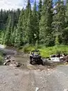 We started up and it was okay at first. But the trail got rougher and scary near the top. You need to take a four wheel drive vechicle. There's beautiful streams, lots of mountain views, and narrow roadways. The drop offs of these road ways are hundreds of feet down, you have to respect other drivers, and find places to move off the trail, & move over for others. The dust is terrible from other drivers, so take a painters mask to cover your face. Just my own advice.