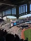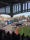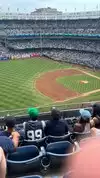 We hey good money for our tickets on the second level which by the fourth inning of the Yankee game became flooded with a group honestly a thuggish fellows who played musical seats stood up in front of everyone ruining our view and ruining the event and if the Yankees have any kind of security or crowd management that were not evident. We wondered how they got into the section when they clearly were not ticketed.