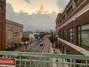 Love this architecture and the history in Ybor City. Was visiting for a food expo with my husband. Seeing the trolley car down the street, the chickens walking everywhere and the historical buildings along with updated buildings was very pleasant to the eye! Many bars/restaurants within walking distance from our hotel and if they aren't, hop on the free trolley :)