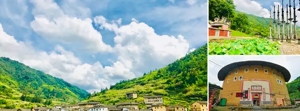 Tasha Village is located in the west of Shuyang Town, Nanjing County, Zhangzhou City, Fujian Province. It is a famous hometown of overseas Chinese in Zhangzhou and one of the first 15 Chinese landscape villages. Known as the "Zhouzhuang of Southern Fujian", this village has a long history. It was built in 1426 and now has more than 300 households. The earthen buildings are built along the river and are very evenly distributed on both sides. The earthen buildings are rich in form, including the common square and round earthen buildings, as well as apron-shaped and L-shaped earthen buildings. The most unique is the Zhejiang-Hangzhou water village model single-courtyard civil and brick-wood structure hanging corner building, forming a wonderful landscape of large buildings with small buildings and staggered layouts. It is known as the "mythical mountain building from a bird's eye view of Tasha Village" for its strange shape and unique style.
