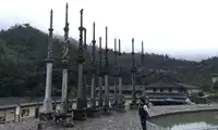 The narrow and quiet stone steps bypass the earthen building, pass through the old house, and lead to Deyuan Hall on the hillside. It is a Zhang clan ancestral hall with Fujian style and flavor. On the small stone platform next to it, along a half-moon-shaped shallow pool, there are more than 20 stone pillars. They are thin and tall, with relief lions and dragons and inscribed characters, which is very special.