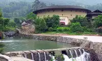 The Tasha Village built along the stream is famous for its scenery. Strolling along the shore, whether it is the blue brick buildings, the stone arch bridge across the stream, or the cobblestone paths in front of and behind the buildings, you can feel the charm of this typical Hakka village. The shapes of the earthen buildings in the village are very diverse. In addition to the common round and square earthen buildings, there are also apron-shaped and L-shaped ones. What's more unique is that there are two round earthen buildings at the bend of the winding stream. If you spend 15 minutes climbing to the observation deck on the top of the hill, a panoramic view of the "Tai Chi" water village will be presented to you.