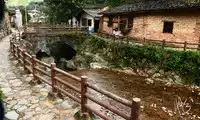 Tasha Village is built along a stream. You can stroll along the river bank at any time in the village. There are small blue brick buildings, stone arch bridges across the stream, and cobblestone paths in front of and behind the buildings - a typical Hakka village. The shapes of the earth buildings in the village are richer than those in other villages. In addition to the common round and square earth buildings, there are also apron-shaped and L-shaped ones. The most unique one is that there are two round earth buildings at the bend of the winding stream. If you spend 15 minutes climbing to the observation deck on the top of the hill, you can see a panoramic view of the "Tai Chi" water village. Of course, I didn't have time to climb up during the day to see it.