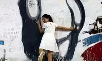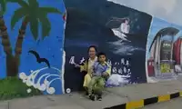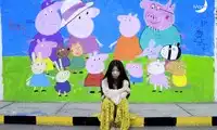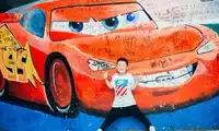 The children were indifferent to so many graffiti, but only liked McQueen. They posed for photos and looked extremely happy.