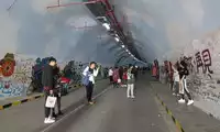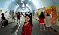 The tunnel is very long, probably more than 1 kilometer. There are many tourists visiting and taking photos in the tunnel, and some popular check-in spots are surrounded by tourists. Many murals are very interesting and immersive. Seeing those pictures really makes me miss my college days.