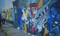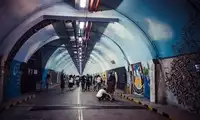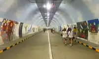 The colorful murals of people and things are eye-catching, turning the entire tunnel into a unique art gallery.
