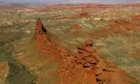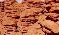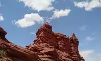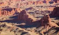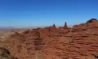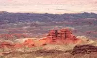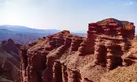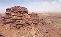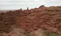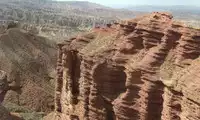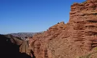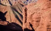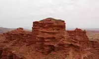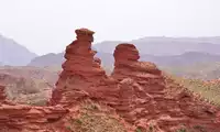 Pingshan Lake Grand Canyon may not be as famous as Mati Temple, but the reputation of China's "Colorado Grand Canyon" makes me curious about what it looks like. The geological structure here belongs to the red layer landform. The so-called "red layer" refers to the red rock system formed by sedimentation from the Mesozoic Jurassic to the Cenozoic Tertiary, generally known as "red conglomerate", which is 180 million to 240 million years old. The canyon is characterized by flowing water gullies, low and gentle mountains, with sandstone mountains as the background. It is mainly red, white and ochre red, and the color is slightly gray. Most of them are conical or columnar, with strange shapes. It was very sunny on the day I went there, but the wind was very strong.