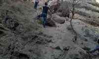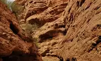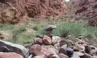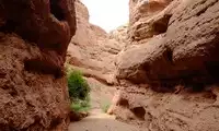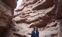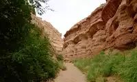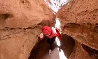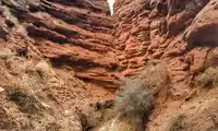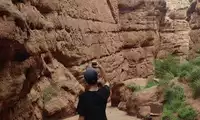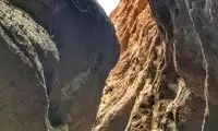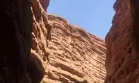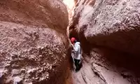There is a very narrow section in the middle of the canyon bottom, and you need to step on the concave holes on the stone wall to climb up.