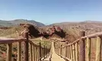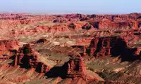 The geological structure of Pingshan Lake is a red rock system formed by sedimentation from the Mesozoic Jurassic to the Cenozoic Tertiary, also known as "red conglomerate". The canyon is characterized by gullies, low and gentle mountains, with sandstone mountains as the background, and red and white and ochre red as the main colors. The vast spirit, the awe-inspiring demeanor, the strange scenery