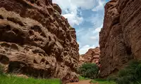 There are not many tourists here, and there are hiking routes and in-depth tour routes. You have to take a scenic minibus from the ticket office to the scenic area, which takes about 15 minutes. The difference between the two routes is that after arriving at the scenic area, you can take an in-depth tour off-road vehicle to enter two scenic spots that cannot be reached by hiking; and you can also take a camel for the in-depth tour. We still chose the hiking route. The road to the entrance of the canyon is very long. The stairs to the bottom of the canyon are a bit shaky. There is a line of sky, a sacred tree, and the most famous ladder. The entrance to the ladder is very small, and the first section is a wooden board and a hand-pulled iron chain that looks unstable. I didn't dare to take the ladder, so I took another detour. As a result, I was dumbfounded. The other flat road required 800 steps, which took about 20 minutes longer.