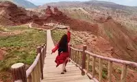 If you don't have the chance to visit the Tianshan Grand Canyon in Kuche, southern Xinjiang, the Pingshan Lake Grand Canyon, located in the north of Zhangye, Gansu, is a red Danxia landform attraction that is worth seeing. The scenery is very open and magnificent, and walking down the plank road, there are also very claustrophobic canyons and a very interesting ladder. This kind of landform scenery cannot be seen in the mainland, and even in the northwest, it is not common.