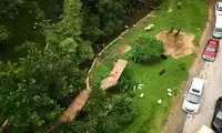 There are many new buildings nearby, and most of them are small two-story duplexes with children's rooms.