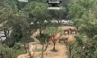 It feels better to take the cable car to see elephants and giraffes. It really feels like I'm on the African grasslands.