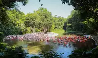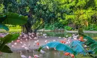 After that, you will enter the pedestrian area and follow the signs to visit. You will pass by Jurassic Adventure, Rainforest Wonderland, Golden Snake Secret Realm, Baihu Mountain, Koala House, Asian Elephant House, Panda House, and finally walk to the South Gate to see Flamingo Island.