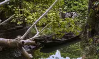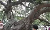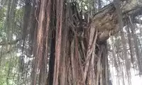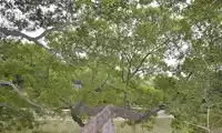 There are many old trees in the village. The trunk of one tree is very special, as if cooled magma flowed down and piled up together. There is also a giant tree that can really be regarded as a single tree forest, with its branches extending more than ten meters in all directions. Because the branches are too long, other trunks are used to support some places.