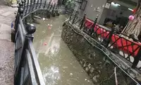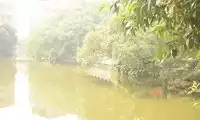 There is a stream running through the entire village. The water looks like stagnant water and is muddy.