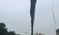 I found a wall painting showing a "naughty kid" climbing a tree and poking a high-voltage wire with a stick.
