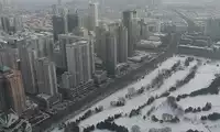 Three years ago, I visited Harbin. December was the Ice City, and after the first snow, the sky was exceptionally clear. Walking along the glass loop of the Dragon Tower, gazing at the cityscape below, I experienced a unique sense of the Ice City's beauty. The only drawback was that the glass hadn't been cleaned, so the view looked a bit blurry.