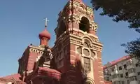 There are many churches in Harbin. At the other end of Gogol Street, there is a crimson Church of Our Lady of Protection, an Orthodox church with typical Byzantine architecture.