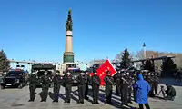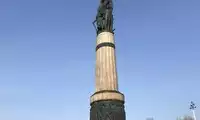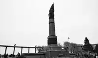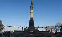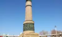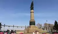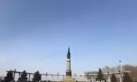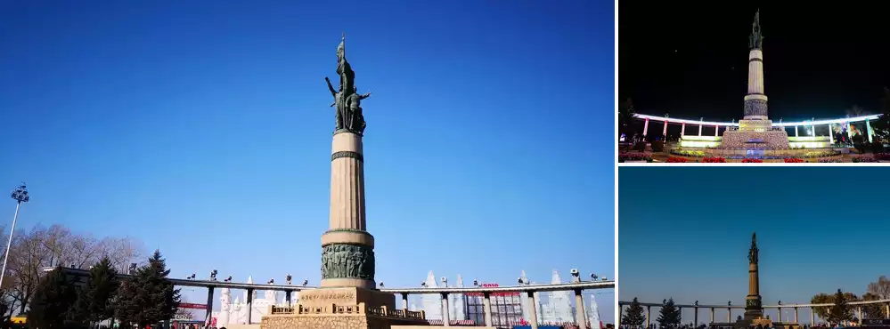 The memorial tower has a very clean shape and is located in Stalin Park on the bank of the Songhua River. It is just at the end of Central Avenue.