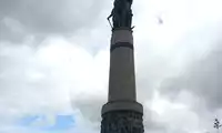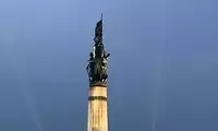 On the banks of the Songhua River, a tall memorial tower stands in the Flood Control Memorial Square. Built by Harbin to commemorate the city's victory over the devastating flood of 1957, the tower comprises a main body, fountain, and corridor. Its base is constructed of sturdy, granite rubble. A relief sculpture in the center of the tower depicts heroes involved in flood control and embankment construction, telling the world about the heroic efforts of those who fought in the flood control effort. A circular sculpture of workers, peasants, and intellectuals crowns the tower. Behind the tower, a Romanesque corridor, formed by 20 7-meter-tall columns forming an arc, accentuates the monument's grandeur.