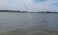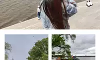Walk straight to the traffic light. On the left is Central Avenue, and on the right is Wanda Plaza. The landmark People's Flood Control Memorial Tower is here, as is Stalin Park. The memorial square is packed with people: some singing, some flying kites, some taking photos, some setting up small stalls... The memorial tower looks even better at night. Ahead is the expansive Songhua River. The famous Songhua River! I finally saw it in its true form. It's vast and wide. To the right, I can see the Songhua River Binzhou Railway Bridge, and boats are docked on the shore. The first time I walked along the river, the wind was a bit chilly, and the temperature was around 15 degrees Celsius. But now that the sun is out, I don't feel too cold. It's just a bit windy, and my hair hasn't been done up yet.