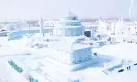 It is mainly composed of various ice buildings, with a stage for performances outdoors, a fashion show indoors, an ice rink, and a small slide for children to play on.