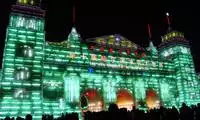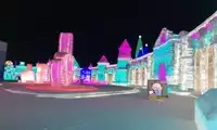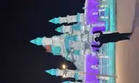The Ice and Snow World beside the Songhua River has bright lights that you can see from afar. The crystal clear ice castle is magnificent against the backdrop of the lights!