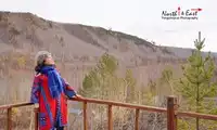 This is a rather unreliable scenic spot. Most scenic spots in Inner Mongolia are privately owned. The driver told me that a certain businessman had enclosed a plot of land, built an observation tower, and then blocked the road to charge for use as an attraction. The entrance fee is quite expensive, not worth it. Just enjoy the scenery along the way. The view from the observation tower over the winding path is quite ordinary. The leaves have all fallen, and the gray soil mixed with the bald birch trees has a very bleak autumn feel. I wonder what the scenery is like when the leaves are still there. I counted, but where are the eighteen bends? Why aren't there eighteen? Why is it different from what everyone else counted? Could it be that my math teacher is actually a physical education teacher in disguise?
