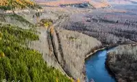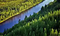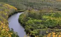 I don't know what kind of river it is, but the way it winds its way through the dense forest is quite beautiful. I imagine it would be even more stunning in autumn.
